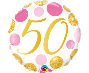 50 th birthday, rose-gold dots