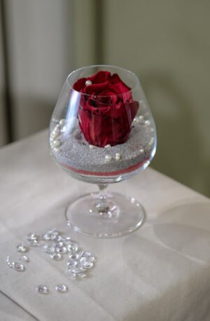 „Miegančių rožių“ arba kitaip vadinamų „Ledo rožių“ kompozicija. Šios rožės nenuvysta keletą metų, nereikalauja jokios specialios priežiūros.