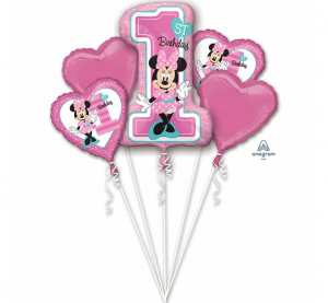 €36.00 Folinis figūrinis ir 4 foliniai balionai Pripildyti helio dujomis. produkto kiekis: Minnie 1st Birthday BQ Į krepšelį