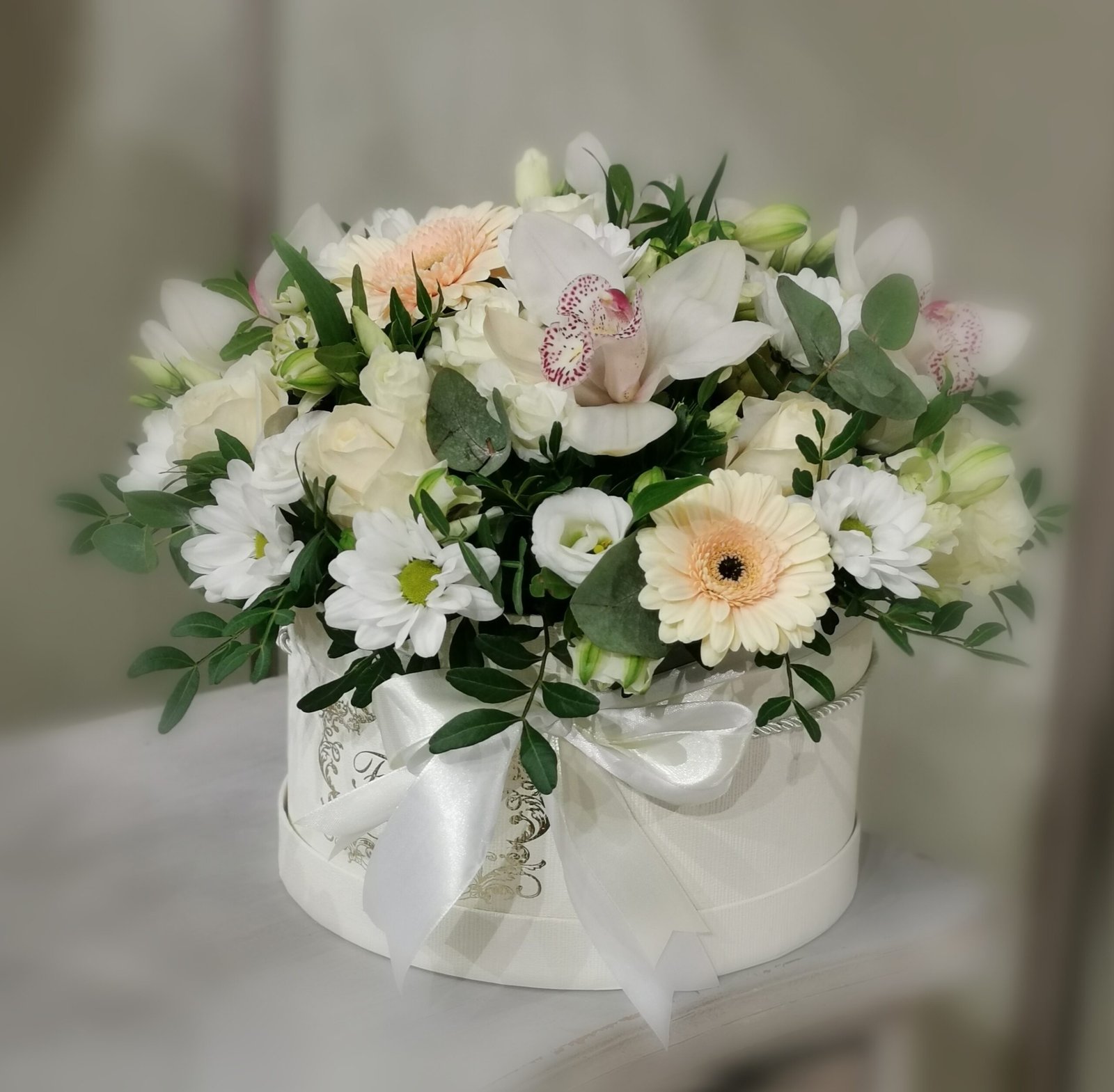€29.90 – €49.90 Gyvų gėlių kompozicija dėžutėje. Naudojamos gėlės: Rožės, eustomos, chrizantemos, gerbetos, orchidėjos ir žaluma. Puokštės gaminamos pagal užsakymą tad rekomenduojame užsakyti bent prieš 1 d. Dydis Pasirinkite savybę~20cm~30cm~40cm~50 cmIšvalyti produkto kiekis: Puokštė dėžutėje nr. 5 Į krepšelį